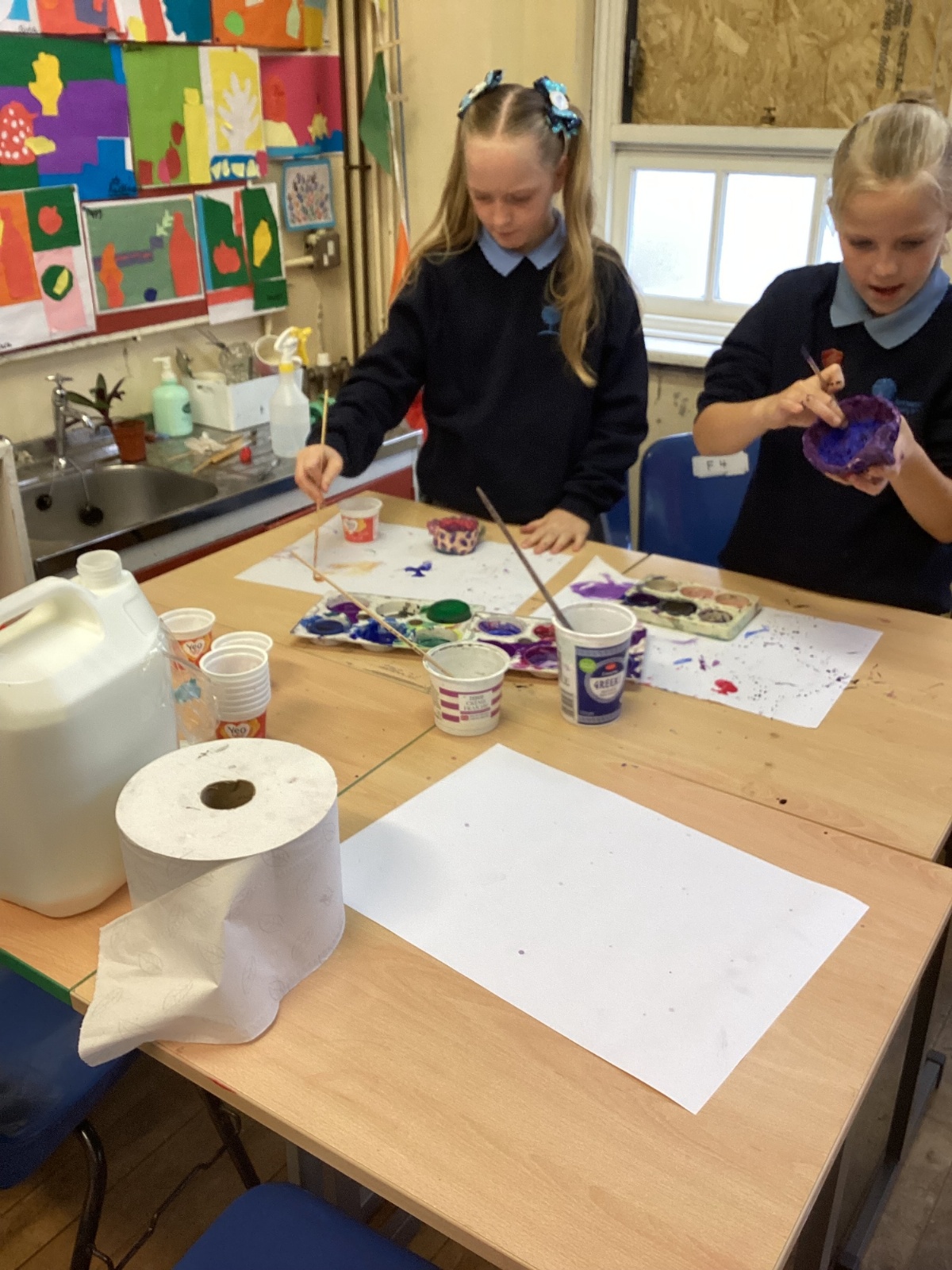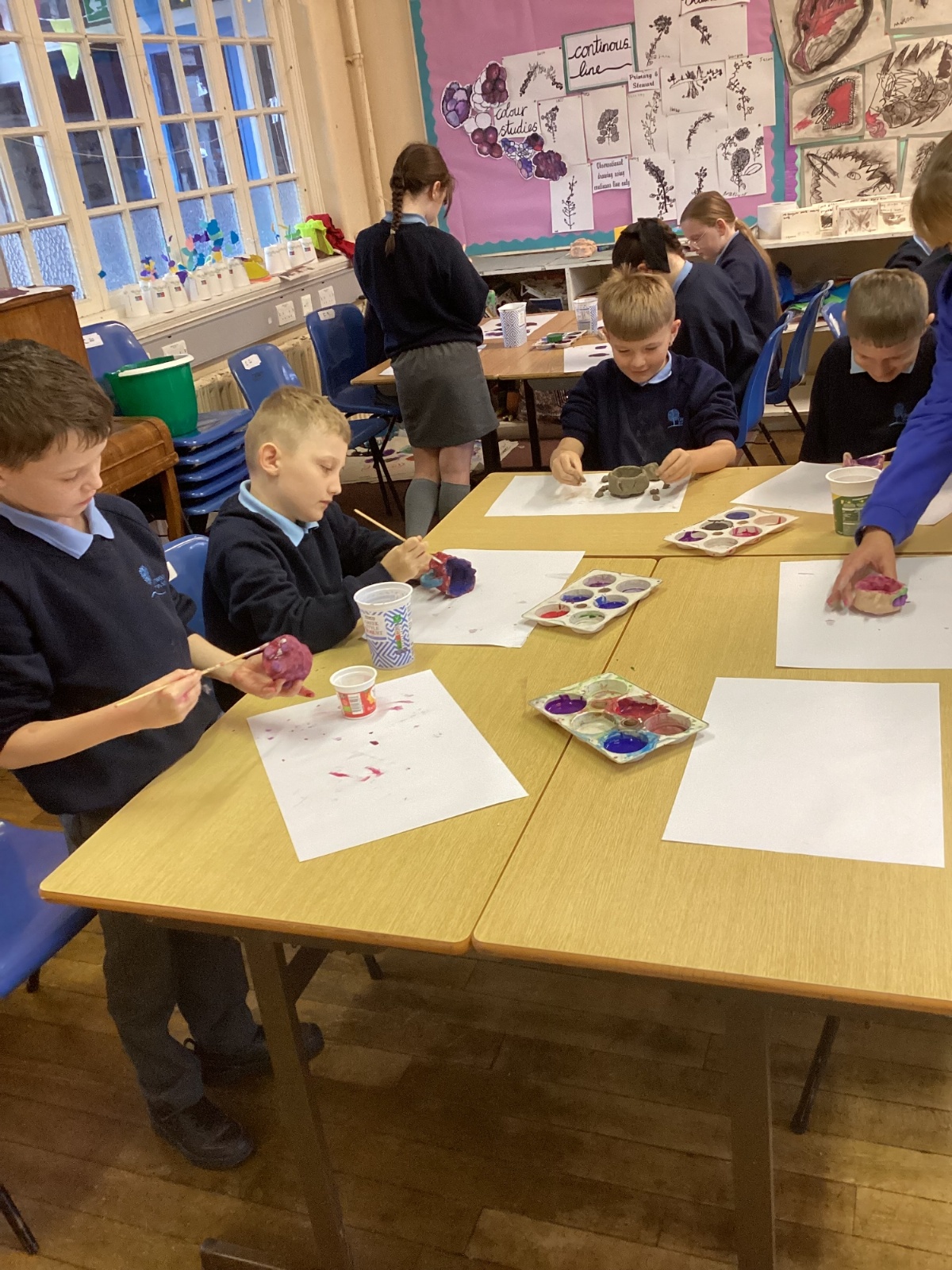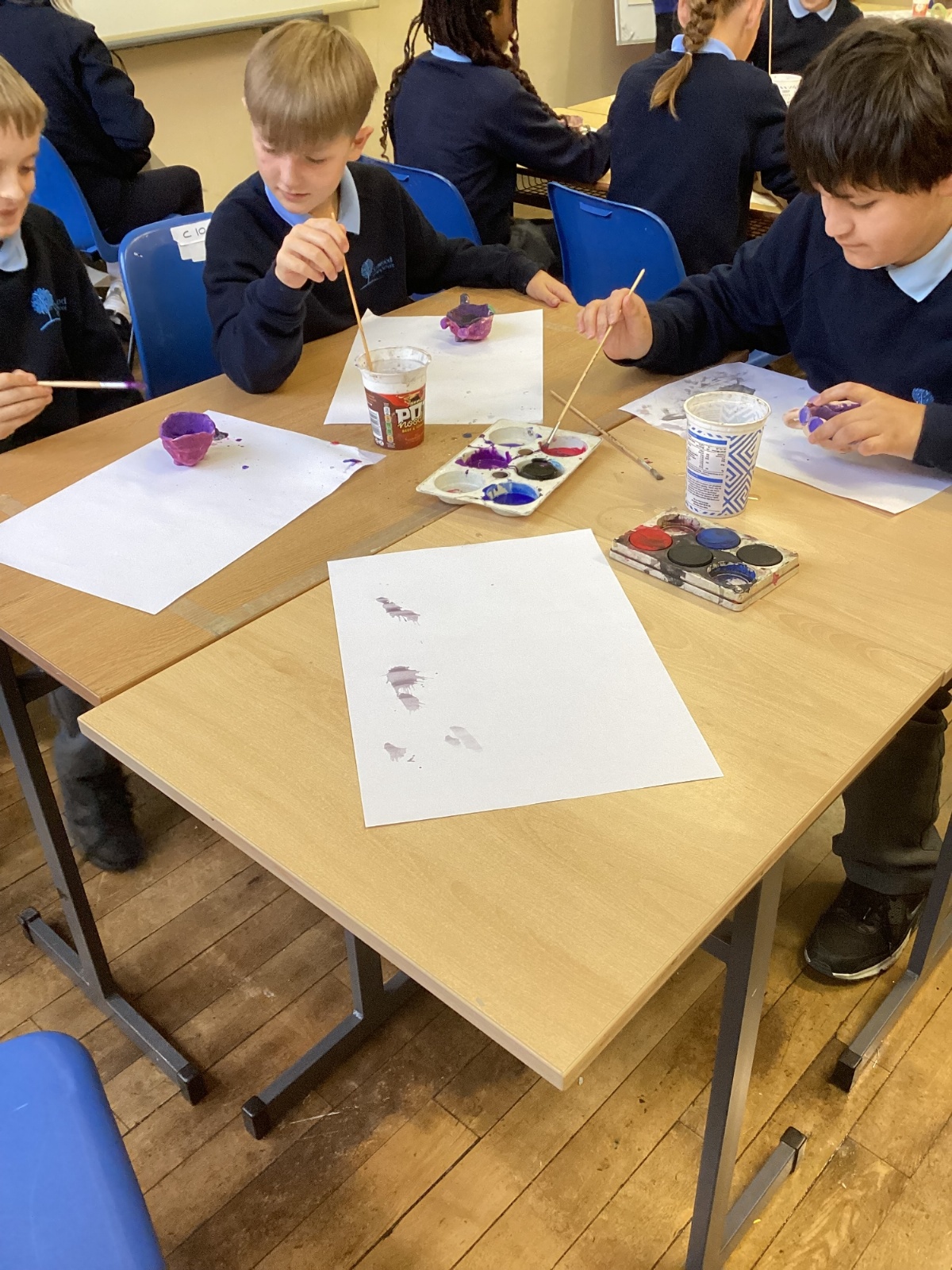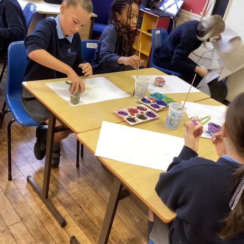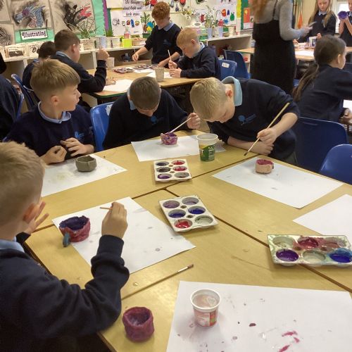 Once the clay was set, the children designed their pots by mixing different colours of paint.