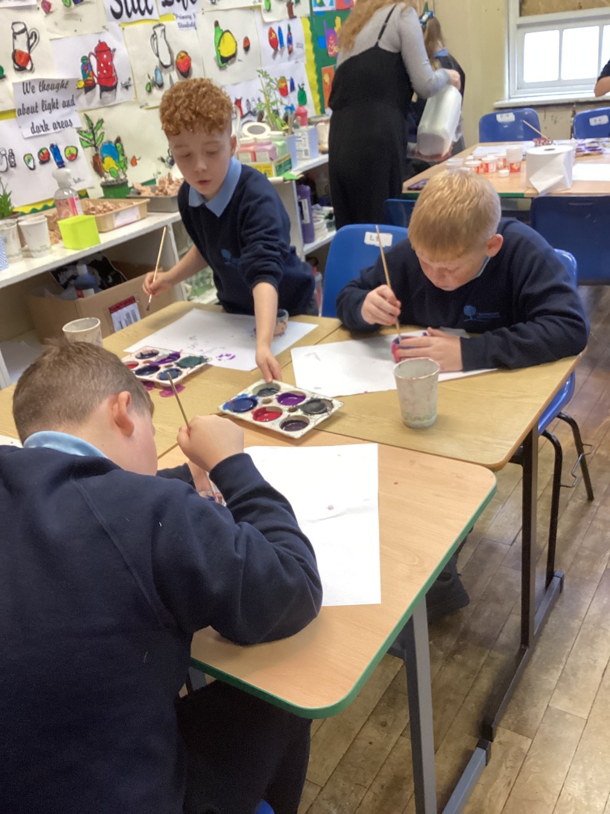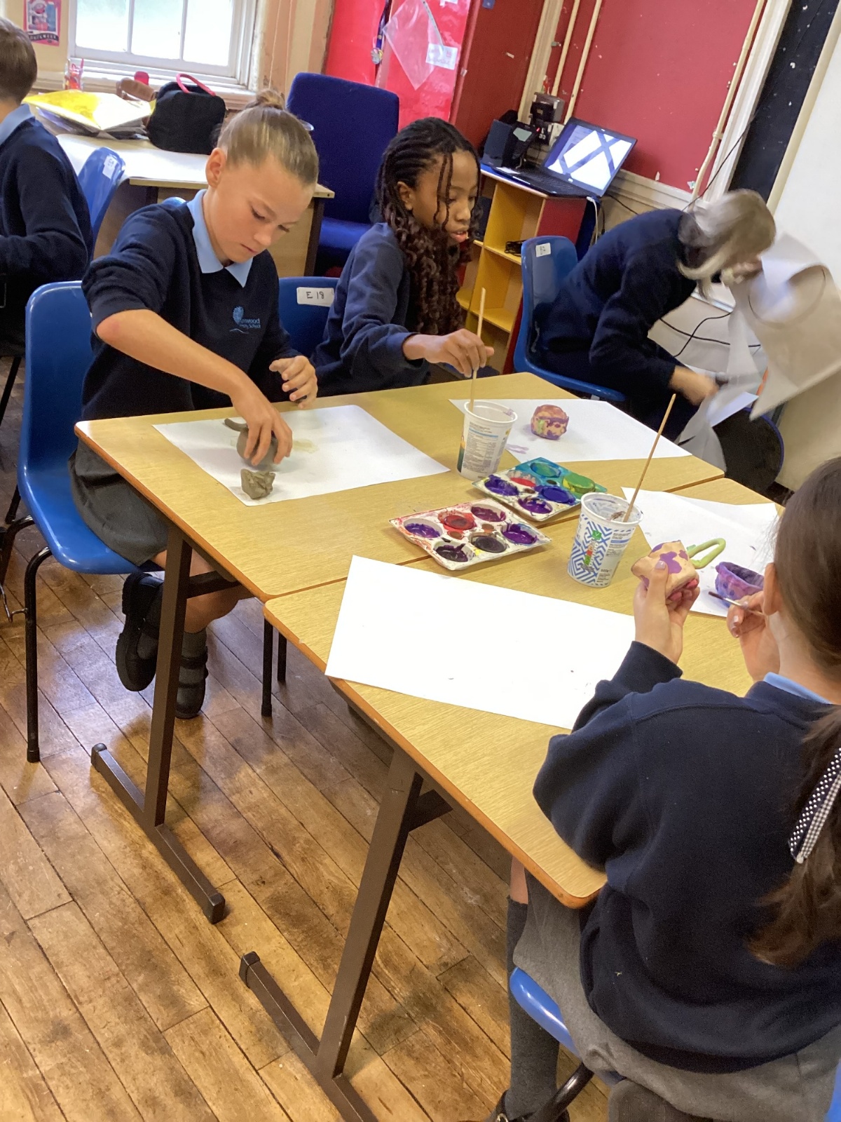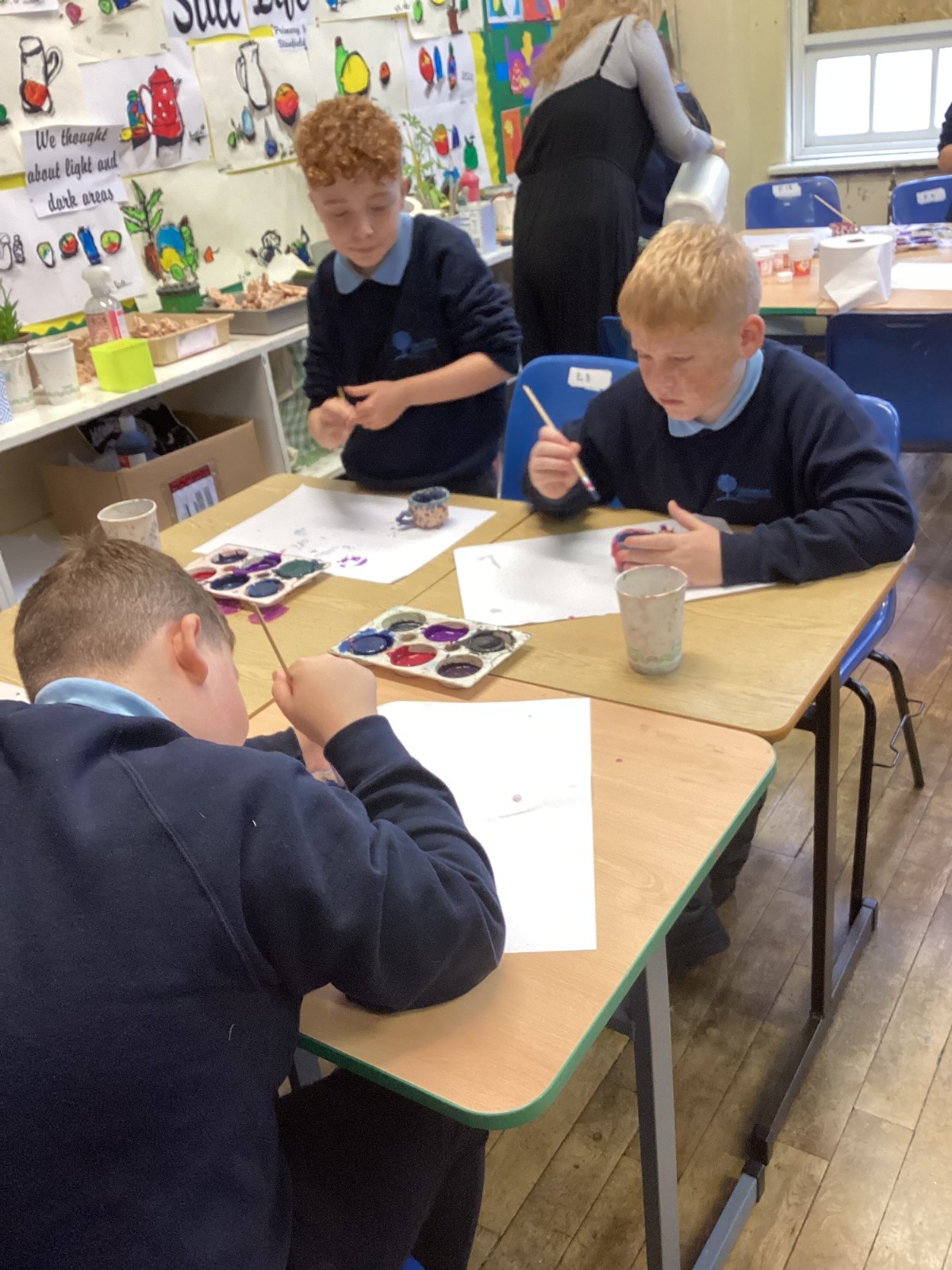 Once the clay was set, the children designed their pots by mixing different colours of paint.
