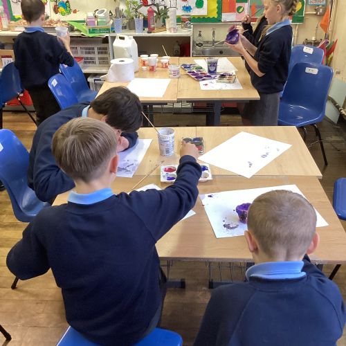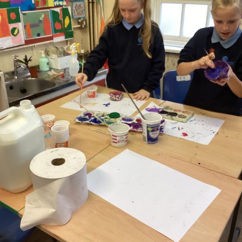 In our art lesson with Mrs Dalton we made blackberry pots.